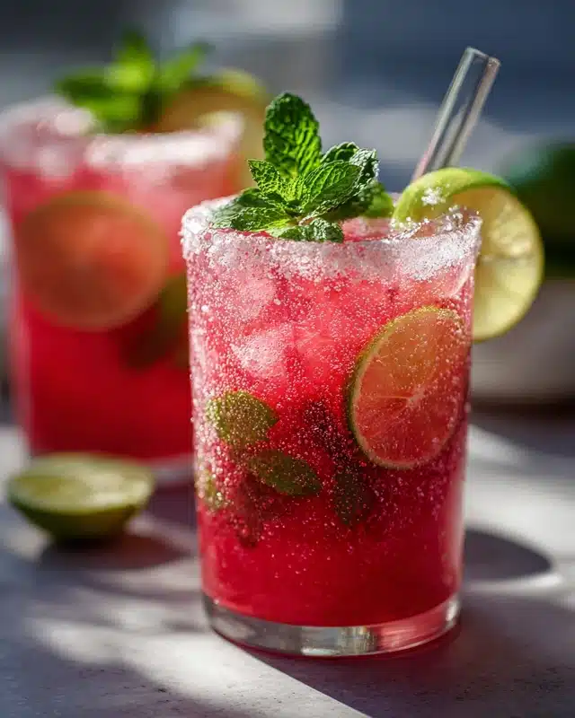 This watermelon limeade is refreshing, sweet, and perfect for cooling down during the hot summer months.