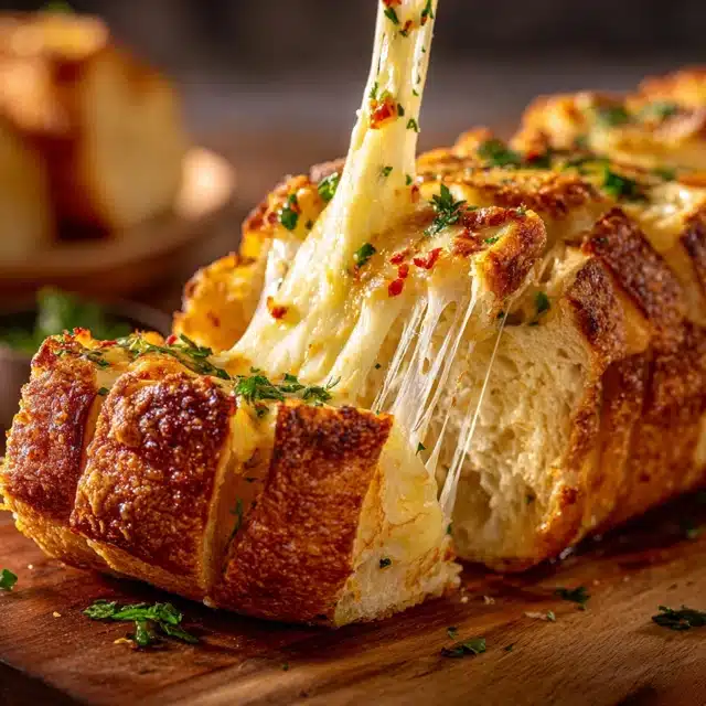 This Cheesy Garlic Bread is the ultimate side dish or snack—crispy on the outside, buttery and garlicky in the middle, and topped with golden, melty cheese that stretches with every bite. Whether you’re pairing it with pasta, soup, or serving it as a party appetizer, this easy recipe delivers everything you want from garlic bread—bold flavor, perfect texture, and pure comfort.