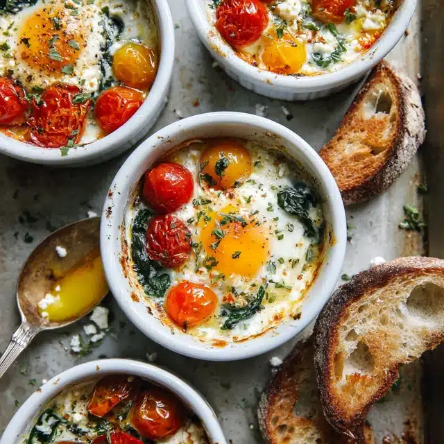 Creamy feta, jammy eggs, and a garlicky tomato base come together in this Mediterranean-inspired baked egg dish. Perfect for brunch or a light, satisfying dinner.